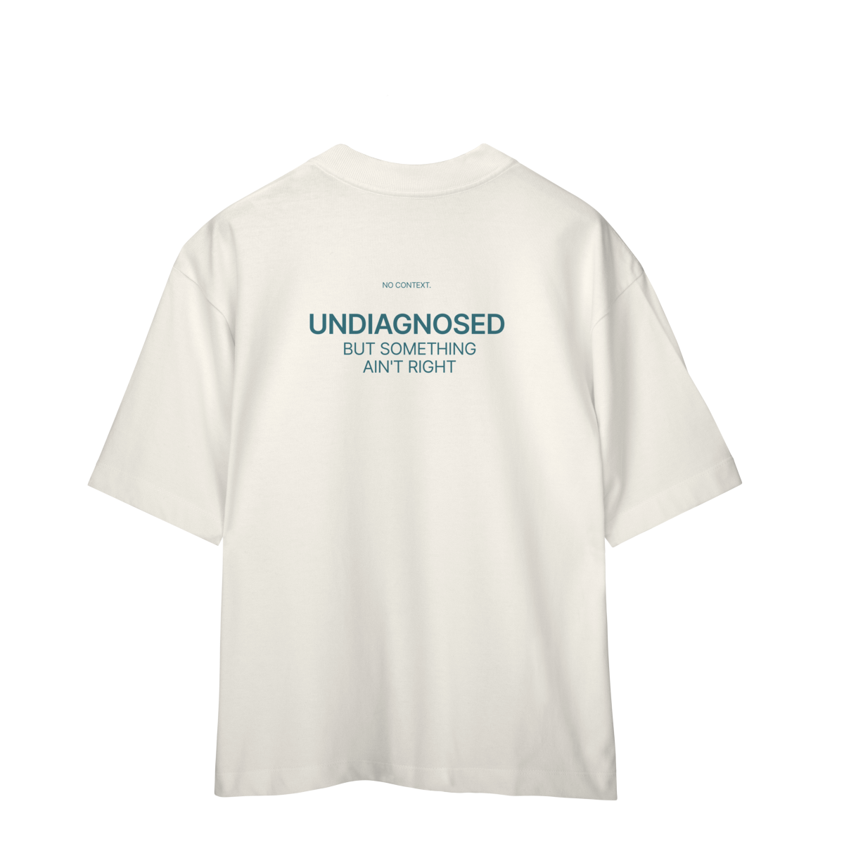 A estampa Undiagnosed traduz aquela sensação universal de desconforto silencioso, ironia contida e lucidez tardia — quando você sabe que algo não está certo, mesmo sem saber exatamente o quê.